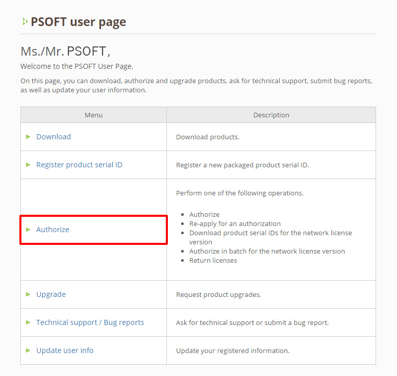 User Page(https://www.psoft.co.jp/user/en/)