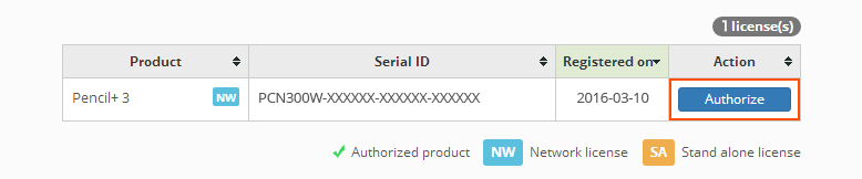 Step 1: Select one license to be authorized and click [Authorize].¶