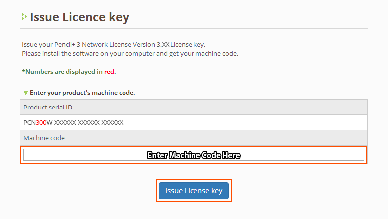 Step 5: Enter the Machine Code from Step 2 and click [Issue License key].¶