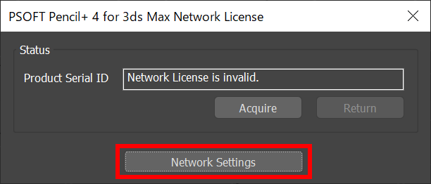 Click [Pencil+ 4] > [License] in the menu bar, click the [Network Settings] button in the Pencil+ 4 Network License dialog.