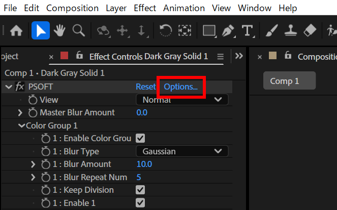 Click [Options] in the Effect Control Panel and then click [License setting] in the [Options] dialog.