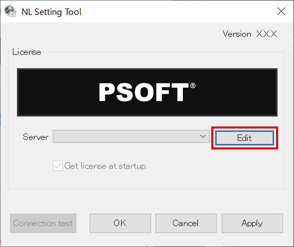 Start the "NL Setting Tool" and click [Edit] to open the "License Server Settings" window.
