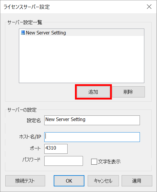 2. [追加] ボタンをクリッククリックして新たなサーバー設定を追加するか一覧にあるサバー設定をクリックして選択てください。