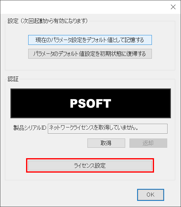 サーバー PC のインターネット通信ができない場合は [オフライン返還] でライセンスを返還してください。