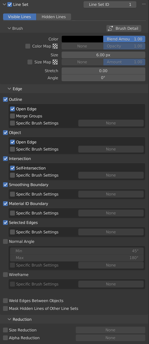 라인셋 설정이 여러 오브젝트를 대상으로 하는 경우, 검출된 에지를 연결하기 위한 설정입니다. 활성화 되어 있으면 오브젝트 사이의 라인의 스트로크를 연결합니다.