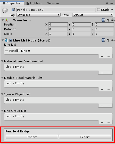 読み込んだ Pencil+ 4 ライン設定を現在のシーンに追加します。