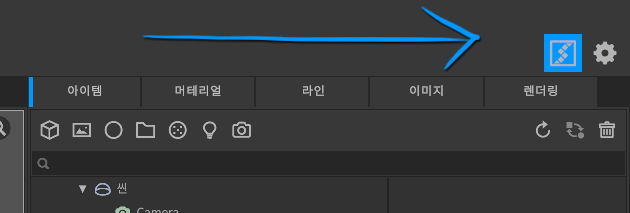 3D 뷰포트의 조작은 화면 오른쪽 상단의 버튼 또는 단축키를 사용하여 수행할 수 있습니다.