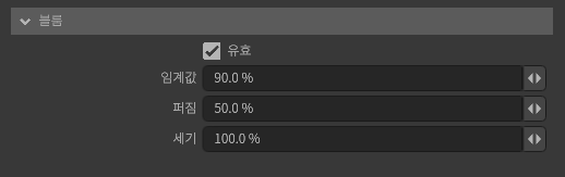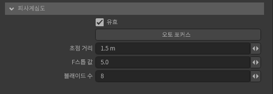 3D 공간을 어떤 구도로 촬영할지 결정합니다. [피사계 심도]나 [블룸] 등 실제 카메라와 같은 효과를 설정할 수 있습니다.