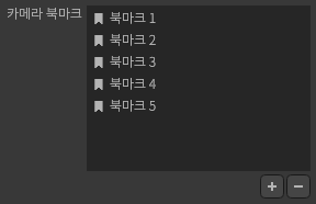 카메라의 [위치] [회전] [스케일]을 저장하여 빠르게 전환할 수 있습니다.