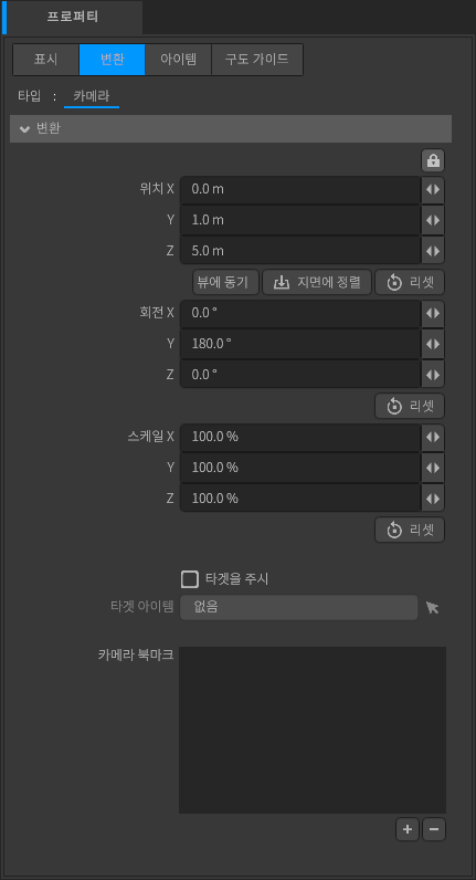 카메라의 변환(transform) 관련 설정을 수행합니다.