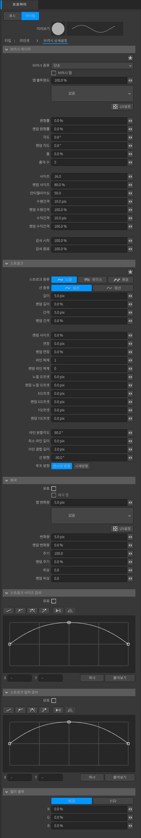 브러시 상세 설정
