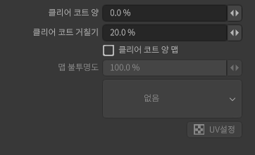 [클리어 코트 양 맵]과 [클리어 코트 양]의 혼합량을 설정합니다.