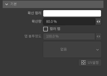 맵의 활성화/비활성화를 설정합니다. 이미지를 사용하여 머티리얼에 색상을 설정할 수 있습니다.