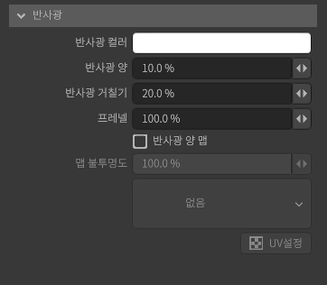 맵의 활성화/비활성화를 설정합니다. 이미지의 휘도를 사용하여 머티리얼의 반사광량을 설정할 수 있습니다.