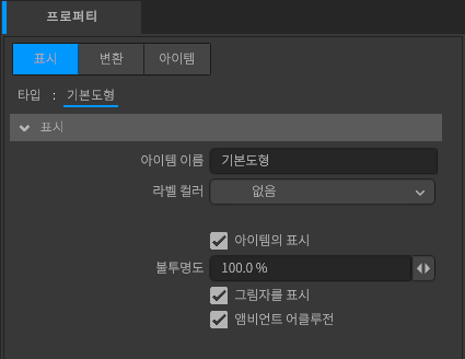 기본도형의 형태에 대한 설정을 합니다.