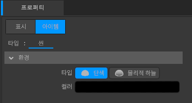 태양의 유무를 설정합니다. 태양은 뷰포트에 표시되지 않는 방향 라이트로 기능합니다. 기본적인 동작은 라이트의 파라미터와 공통입니다.