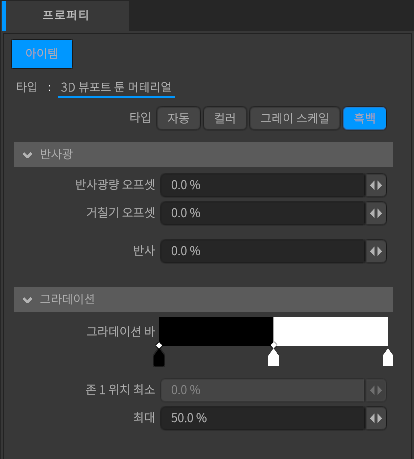 흑백 그라데이션 바를 사용하여 툰 표시를 조절합니다. 2단계 톤의 만화용 그림을 만들기 위한 머티리얼입니다.