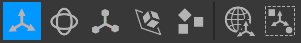 - 버튼이 하이라이트 표시된 경우 도구 핸들의 각도는 월드 좌표가 됩니다.