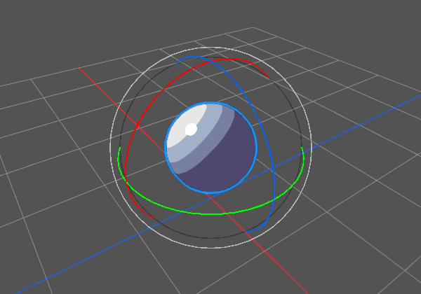 - 핸들 외곽의 회색 원을 드래그하면 3D 뷰포트의 스크린 평면의 Z축을 따라 회전할 수 있습니다.